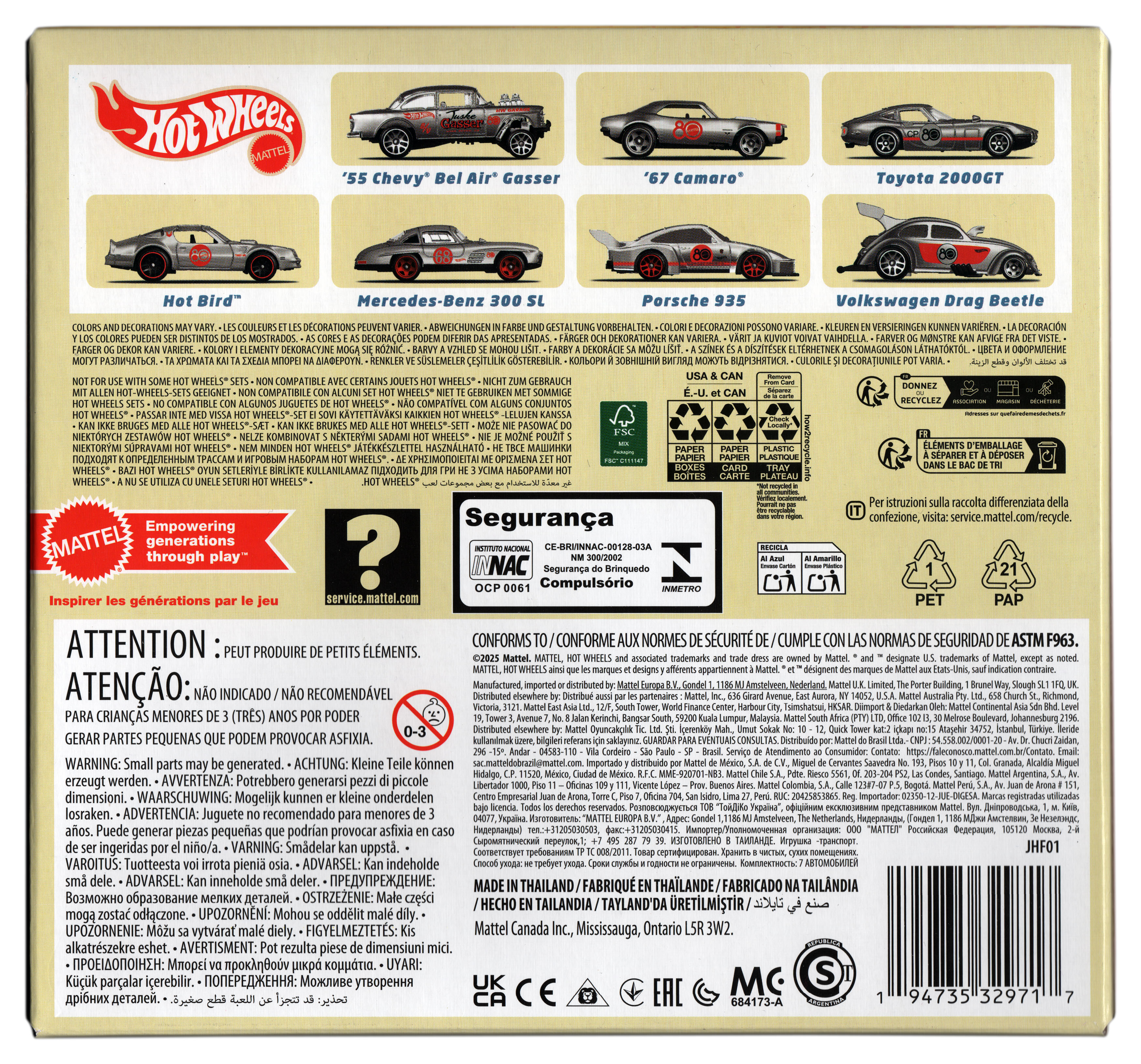 En 2025, pour les 80 ans de Mattel, 7 voitures de sport sortent avec une teinte argentée, c'est la série Replay The Classics.