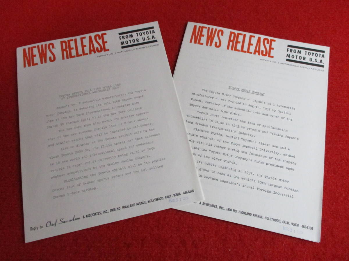 Ce flyer est imprimé sur un papier photo, il annonce le début de l'importation de la 2000GT aux USA, et fait partie d'un press kit Toyota distribué lors du salon international de l'automobile de New York de 1968. |