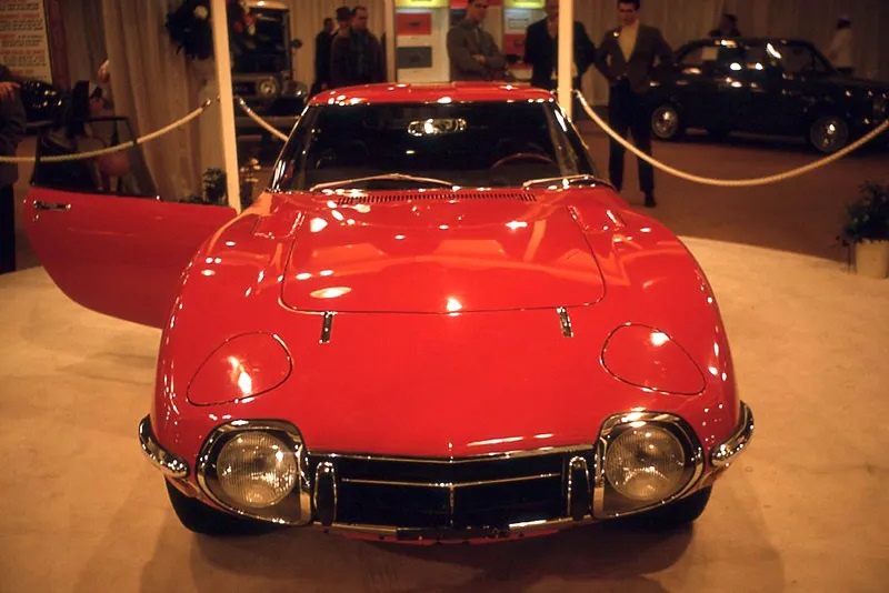 Le 24 février 1968 s'ouvre le 60e salon de l'automobile de Chicago, l'un des plus grand salon du monde. Toyota expose une 2000GT rouge. Elle a bien le volant à gauche mais pas de rétroviseurs extérieurs.