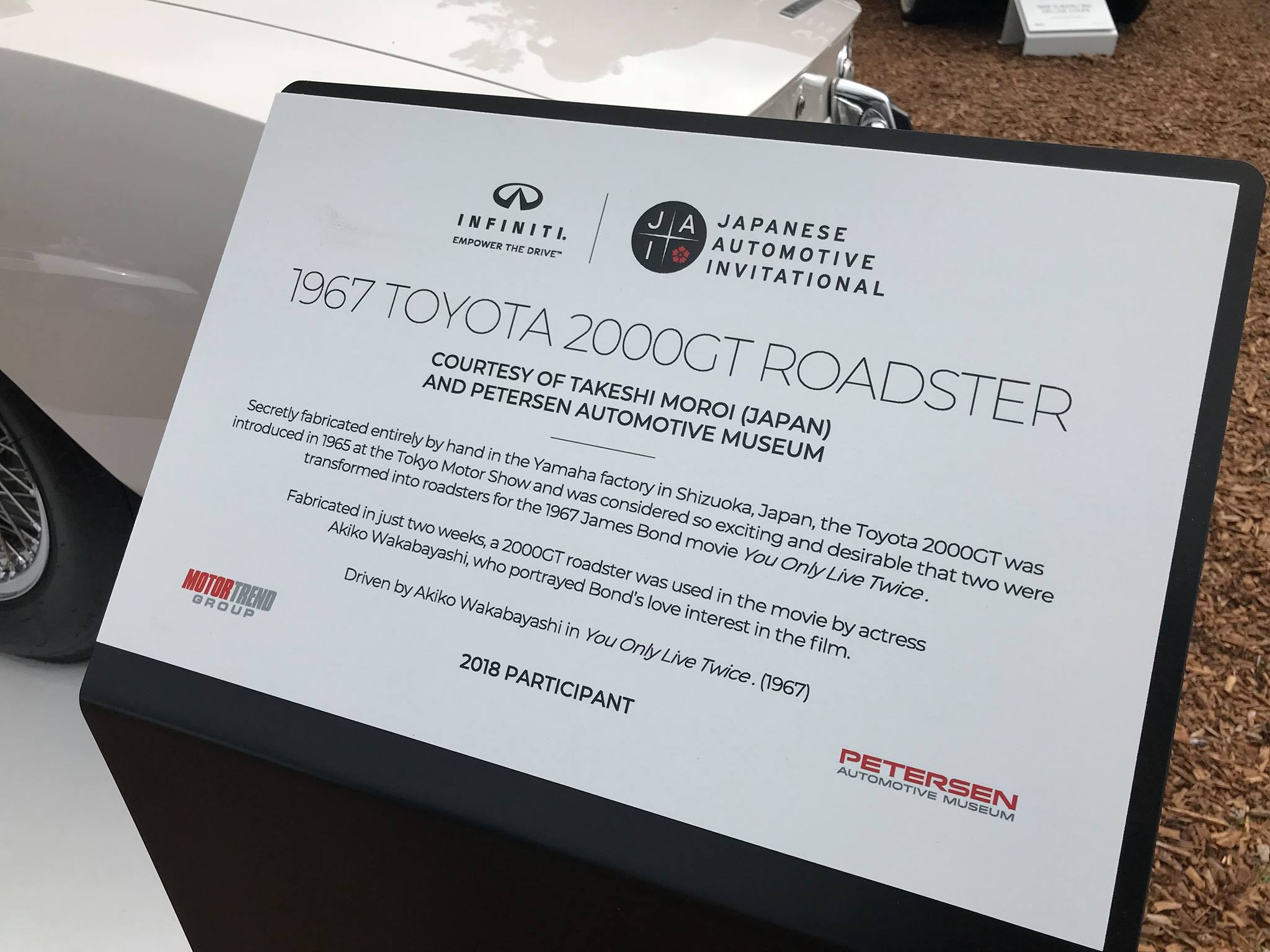Le Concours d'Elégance de Pebble Beach est un incontournable des rendez-vous des voitures d'exception. En 2018 la 2000GT de Takeshi Moroi était fièrement présentée.