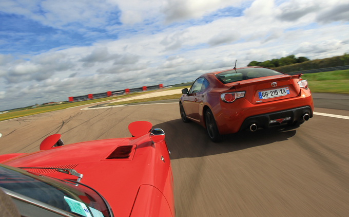 Comparatif entre la 2000GT et la GT86. La 2000GT essayée ici sur le circuit de La Ferté-Gaucher n'a que 35'000 km au compteur.